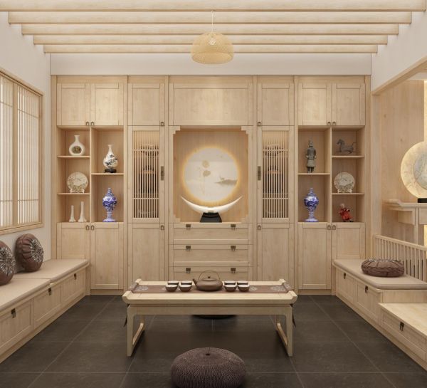在色调选用上,避免浓墨重彩,浅色系的搭配不仅能展现中式美学的素雅风韵,还能更好地与现代风格想融合。