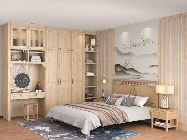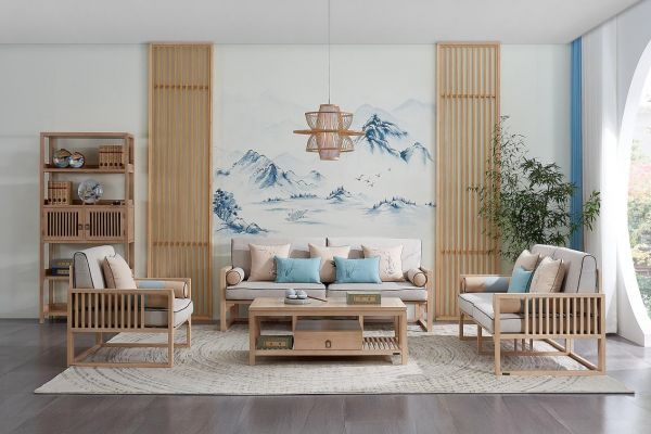 新中式家居设计往往遵循“去繁琐,存风骨”的原则,在保留了中式的古典美的同时,也尽量避免过于厚重的色彩的使用,正如全友这一套案例,就是以自然浅木纹为主色调,打造古朴大方、简洁轻盈的居家氛围。