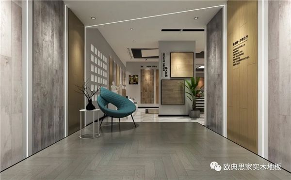 新展厅突破传统欧典思家地板产品的思维,人字拼、鱼骨拼以大尺度的空间纵深和立体感营造舒适、自由、开阔的视觉和心理体验。