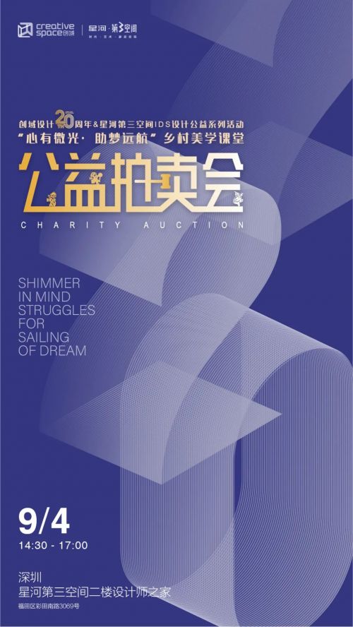 以设计为媒,践公益之行。创域设计20周年&星河第三空间公益系列活动,以设计与公益相结合的模式得到社会的广泛关注与热心支持。而本次公益系列活动的重头戏——公益作品拍卖会将于9月4日在星河第三空间隆重举行,欢迎诸多设计师、企业家及爱心人士参与,一起见证爱心现场。