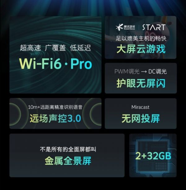 其中,腾讯START云游戏作为一个比较新颖的概念,是创维A5 Pro从单纯的电视升级成为“云游戏剧幕影院”的关键,在腾讯START云游戏的支持下,年轻人可以在这款大屏电视上体验到《NBA2K Online2》、《原神》、《QQ飞车》等诸多热门游戏,直接登录自己的游戏账号即可,账号内的段位、装备全部共享。而Wi-Fi6·Pro则凭借超低延迟、超快速率、更广范围的属性,保证了年轻人观影、游戏的沉浸式体验,不受外界干扰。最后还有护眼无屏闪、光学防蓝光、强突变保护等护眼技术,让年轻人观影、游戏无负担!