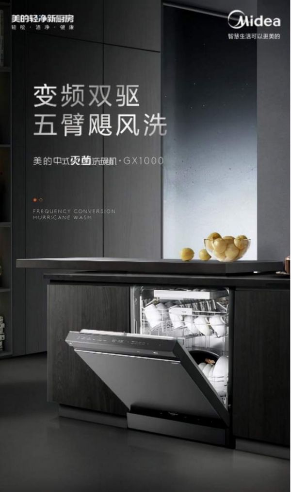 作为全球领先的科技集团,美的敏锐捕捉用户痛点需求,创新推出美的双驱变频洗碗机GX1000,凭借“双驱变频,五旋飓风劲洗”、“少量分层洗,环保节能”、“钛净味灭菌技术”等核心技术优势,成为洗碗机界明星爆款,为用户带来健康生活新方式。