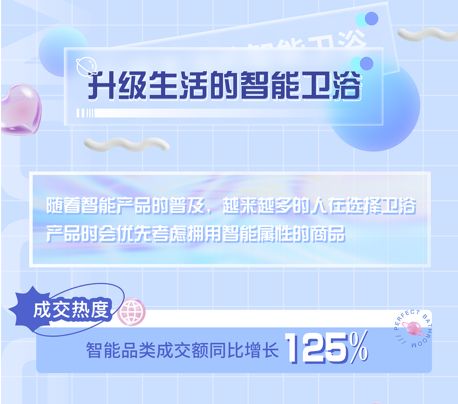 智能卫浴的好,用过的人都忘不了。作为身心“减压”的重要场所,智能化的卫生间对当代年轻人诱惑力相当大,“打造一个更懂自己的智能卫生间”成为当下居家换新改造清单上的重头戏。智能卫浴产品身上的增压、自动、恒温等智能属性,持续受到主流关注;遥控、除雾、触控、记忆等智能属性受关注度涨势明显,搜索词同比增长50%。2021年1月-7月,京东居家平台上智能品类成交额同比增长125%,马桶、浴室柜是最受消费者关注的两大品类,其中马桶智能化率已达71%,智能马桶成交额同比增长翻倍,浴室柜智能产品成交增长近2倍。这些卫生间的传统大件已不再是简单的家装用品,而是成为驱动消费者重新定义生活方式的重要因素。