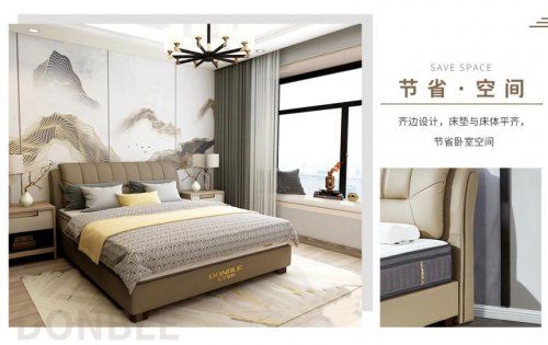 在寸土寸金的一二线城市,卧室空间有限,床架应该尽量选择节省空间的。东宝软床采用齐边设计,床垫与床体平齐,可以节省卧室空间