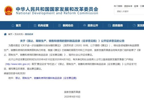 2020年4月,国家发改委推出关于《禁止、限制生产、销售和使用的塑料制品目录(征求意见稿)》,限塑令升级为“禁塑令”。按照“禁限一批、替代循环一批、规范一批”的原则,分2020年、2022年、2025年三个时间段,明确了加强塑料污染治理分阶段的任务目标。
