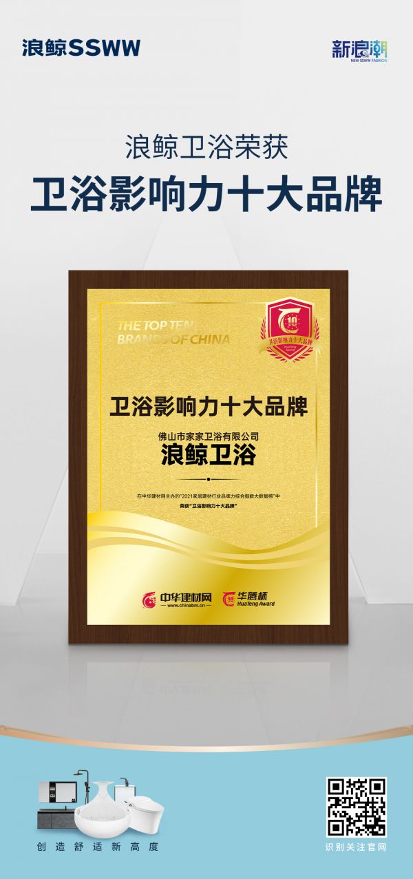 铸就品牌力量!浪鲸卫浴荣获2021华腾杯“卫浴影响力十大品牌”