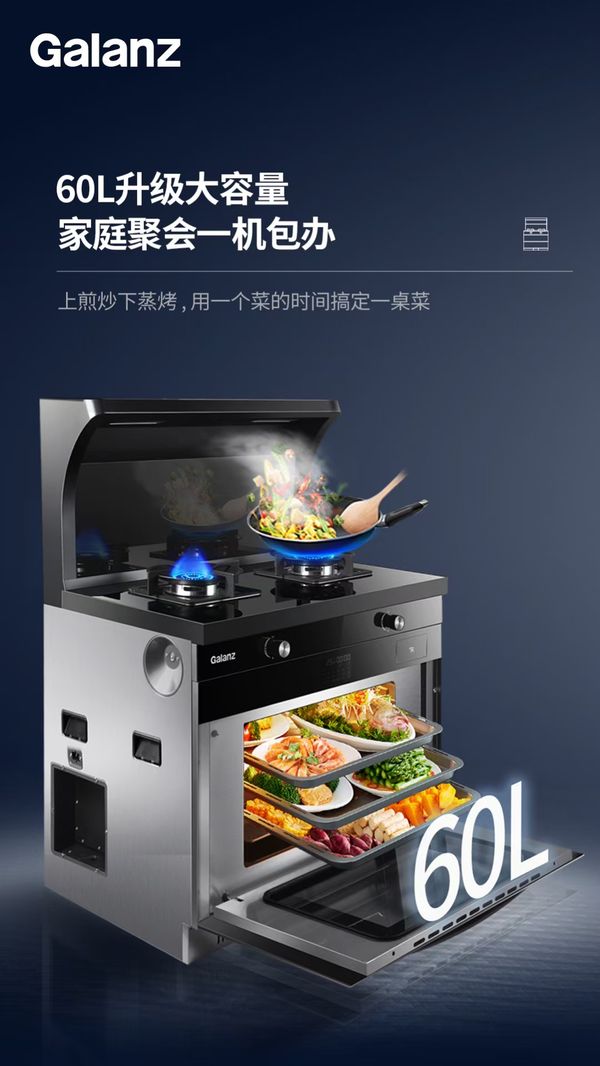 事实上,格兰仕在厨房套系化方面已经开始了布局,对集成厨房的多种设计方案正在进行。其内容主要是根据厨房空间格局、面积大小、厨房场景等设计相应方案;对空间稍大的厨房,可以选择传统油烟机、灶具、消毒柜、洗碗机、嵌入式微蒸烤等产品组合;小户型厨房,可以选择烟灶蒸烤一体机集成灶、洗碗机、集成水槽等产品组合。多种方案适配,给用户更多的选择。