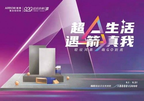 届时超品日会结合线上线下活动,推出箭牌复合轻纹砖多个超值套餐,并将活动通过多维度、跨圈层的媒体传播、造势和爆破,实现箭牌声量的跨越式提升。