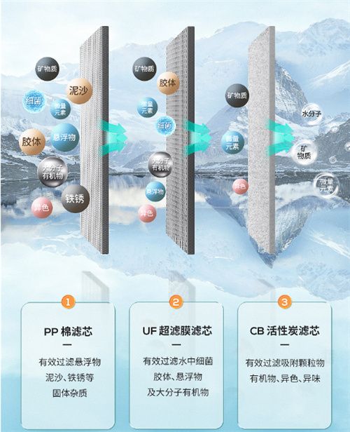 立升厨房净水器C3不仅仅能滤掉有害物质,而且汲取了全球三大天然矿泉水富集地——长白山泉水的灵感,在对家庭自来水深层净化的同时,能保留水中含有的人体所需钙、镁、硅、锶、锂等矿物微量元素,让饮用水达到山泉水的标准,均衡矿物质含量,入口甘甜如泉,长期饮用更健康。