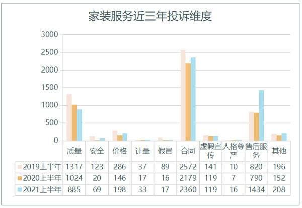 根据2021年上半年全国消协组织受理投诉情况分析,家装服务投诉总量在三年连续下降后再次反弹,上半年达5339件,通过细分可以发现,投诉量激增的主要类目在于售后服务,所以,不排除装修施工、验收过程中标准缺失与消费者对生活品质、细节要求逐渐提升之间的矛盾。