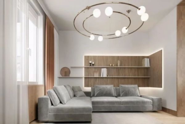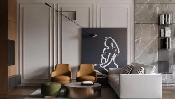 △ 客厅的照明设计可以运用灯光交互搭配,一般采用吸顶灯+LED灯带+壁灯即可,也可加上落地灯、射灯和情景灯营造不同氛围。