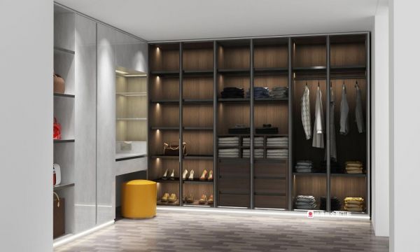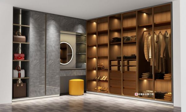 全景柜饰面板有6种花色可选,玻璃也有茶玻、灰玻、清玻三种定制颜色,搭配拉丝黄铜或绅士灰的铝框,不同配色随心定义。玫瑰岛全景柜还能根据不同的场景进行私人定制,例如衣帽间、卧室、书房、客厅等家庭空间,有效满足不同情况下的装修需求,体验不同的生活美感。