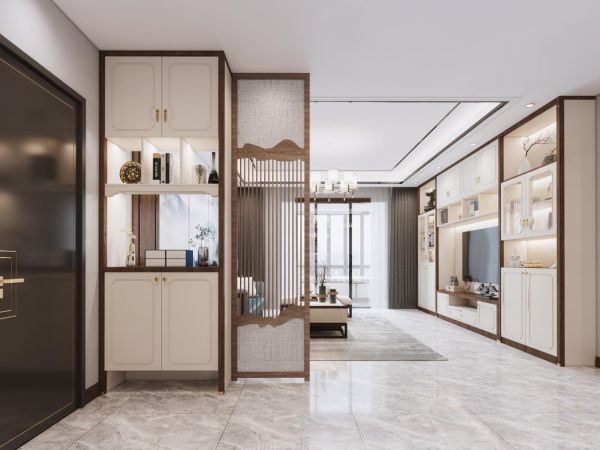 这类玄关一般与客餐厅相邻,或者包含在客厅之中,没有较为明显的独立区域。
