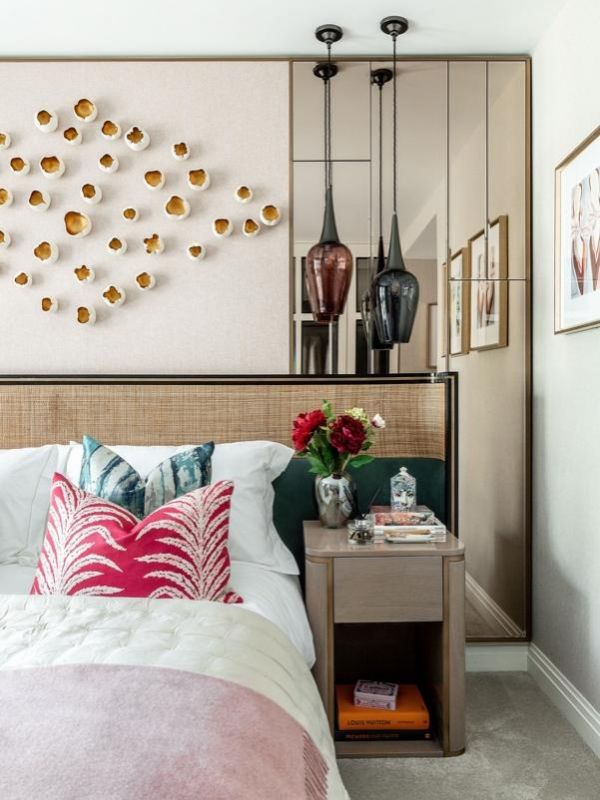 移步卧室,由 Luminaire Arts 精心打造的床头雕塑由40个精美组件构成,宏伟大气。 每件组件都由优质骨瓷制成并饰以金漆,宛如绽放的花朵。深粉及暗灰色系的卧室玻璃吊灯则由另一位著名的英国工匠 Rothschild & Bickers 手工吹制。 整个公寓摆放了各类包含关于地中海美食和生活方式、法国艺术家、时装设计师和摄影等内容的书籍;而公寓香氛则来自 Dolce & Gabbana、Tom Ford 和 Aqua di Parma,旨在唤起漫长而温暖的夏日记忆。