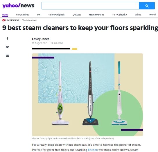 雅虎是英国人最为熟悉的新闻门户网站之一,其不定期的产品测评对当地消费者的消费决策影响很大。此次,雅虎新闻测评了Beldray、鲨鱼、Kärcher、维莱达等9款不同品牌的蒸汽拖把。Hoover凭借在清洁地毯、窗户和淋浴门、地板等多场景下的清洁消毒能力被评为“2021年最全能的”清洁工具。