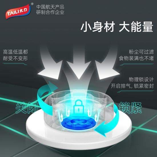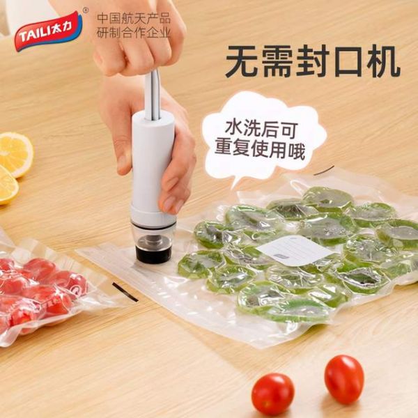 在食品保鲜领域,太力推出小蓝芯食品真空保鲜袋,带来更极致的食品锁鲜。太力全新升级的锁鲜旋钮气阀为物理锁设计,即使袋中的粉尘也可过滤,食物装满也可抽空排气,解决了市场真空保鲜袋的痛点,密封力度更好,保鲜更给力!还可水洗重复使用,更加环保经济。