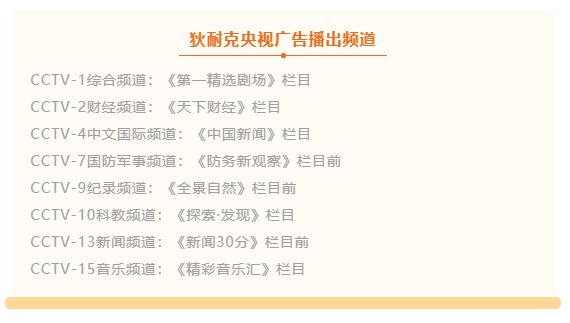 狄耐克央视广告播出频道