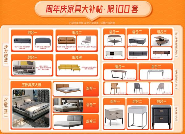 软装,让家居充满格调。9.9周年庆活动期间,沪尚茗居推出100套品质家具,限时补贴。沙发、茶几、电视柜、餐桌、床头柜、真皮大床...你需要的家具品类,这里都有!趁着时机正好,赶紧来沪尚茗居“薅羊毛”,装点你的新家吧!
