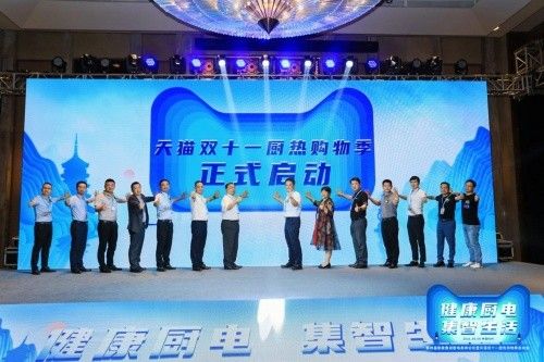 趁此集成厨电行业盛会之际,万众期待的天猫双十一厨热购物季正式启动。中国五金制品协会理事长张东立、嵊州市人民政府副市长史向俊、嵊州市市场监督管理局局长田震携手各位行业大咖共同开启天猫双十一厨热购物季。