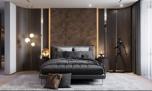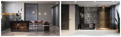 黄麦一将《安盛花苑》的设计定位为深色轻奢风格,借深色系的沉稳来诠释品质生活。这样的设计作品与黄麦一以往的设计作品有很大不同,2018年之前,黄麦一一惯以欧式、美式、法式、地中海4种风格为主,而2018年以后他开始进行现代轻奢风格设计,并且在他的设计中占据比较重要的位置。