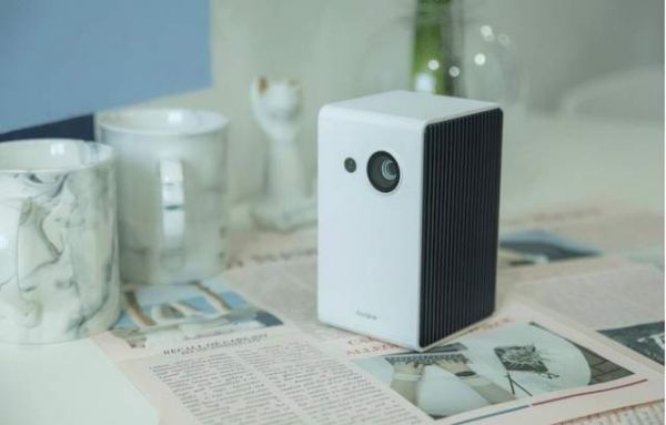 首先我们来看一下这款投影的外观吧,这款投影的外观采用了白色ABS材质打造,在机身正面镜头采用了亚麻布材质进行了封装,在机身两侧有蜂窝状孔洞,可以充当散热出孔。