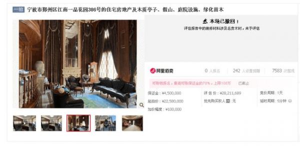 原本2021年9月6日10时要开拍的一座宁波豪宅被撤回,官方给出的解释是“评估报告中的装修材料涉及名贵木材,未予评估”。