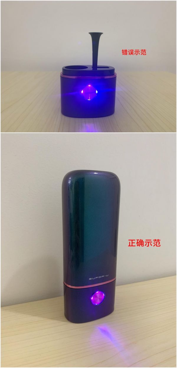 底座上紫红色的圆形按钮就是杀菌开关,Q13设置的杀菌时间是5分钟,除菌率高达99.99%,官方建议是一周杀菌一次。
