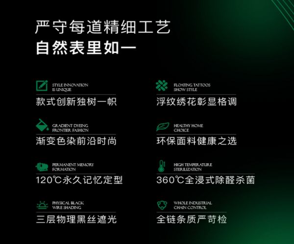 基于对刺绣文化的热爱与对创新研发的探寻,淑敏·尚利将产品线定位于年轻群体,携“绣,生而不同”的品牌slogan,让绣品美学的国粹精华,于窗帘布艺之中大放异彩。而淑敏·尚利绝非止步于此,此后也会将产品深入家居生活的各个领域,不断为消费者提供融汇艺术、时尚和人文的绣品软装解决方案。独特款式、浮纹绣花、渐变色染、环保面料、360全浸式除醛杀菌等产品卖点,无不让窗帘·绣品美学软装始终表里如一。