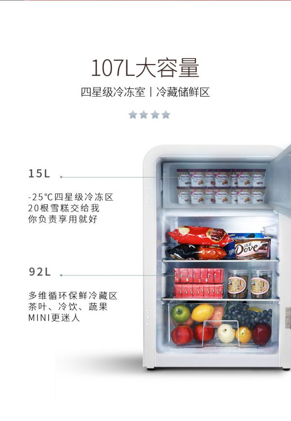 在三十几度烈日的下,回到宿舍谁不想来一口冰冰凉的饮料呢,吃一口西瓜似乎都忘记酷暑的烦恼!市面上很多的冰箱,都还是传统的方正的款式,想拍张好看的照片发朋友圈,却怎么拍怎么丑。哈士奇冰箱复古百搭的配色,搭配上八十度黄金圆弧角的设计,把宿舍都显得很有生活格调。