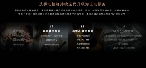 不同于无智能操作(L0)及仅有基础智能控制的互联空调(L1),AirNEXT空气主机将从语音或摄像头辅助控制的“L2基本辅助智能”,最终进化为L4:AI无人托管智能,综合气候、空气质量(如PM2.5及TVOC)、用户行为等,成为无需人为操作,即可自动识别、自主学习、自主决策、自主升级,成为用户专属、具备AI“自我意识”的隐形空气管家。