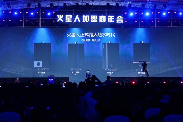 2021年,火星人进入燃气热水器市场,同步推出R51、R52、R71、R72四款燃气热水器新品,完善品类矩阵,在此前的“新纪元”年会上,宣告自己进入“热水时代”。