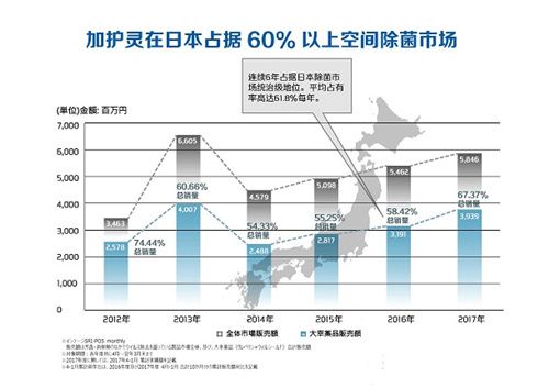 从2008年日本大幸药品株式会社研发并生产加护灵至今,加护灵已经成为日本家庭和医院手术室、学校都广泛使用的空间除菌除甲醛产品。据日本最大市场调查机构Intage统计,2018年4月至2019年3月,加护灵占据日本同类产品81.6%的市场份额;日本调查公司CITATIO统计得出,76%的日本医师推荐加护灵作为家用空间除菌产品。而伴随着疫情的无限延期,加护灵也正悄悄走进中国消费者的家中,人们正在逐渐接受加护灵这种“利用二氧化氯除菌除甲醛来实现空间健康”的新防疫理念。