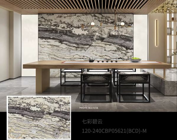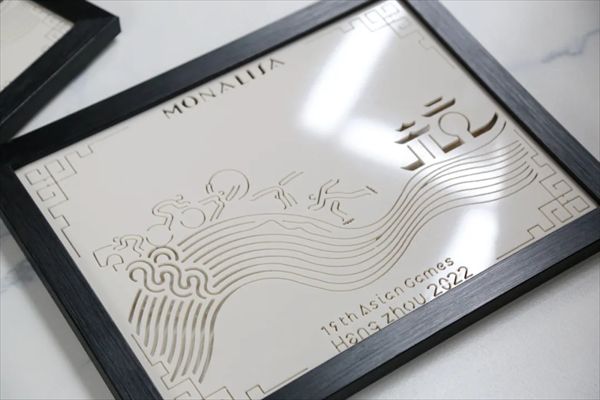 以新研发的核心产品岩板作为材料,利用新的切割技术对产品进行创作,制作出亚运系列的精美瓷艺产品。