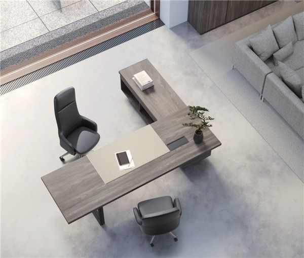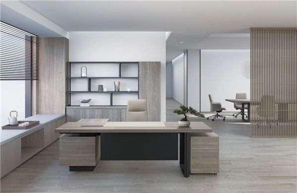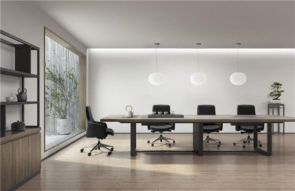 会议桌与主管桌造型风格统一,皆具特色金属桌脚,不失简洁而干练的内在气质,为决策者提供平静的会议空间,更高效地完成工作。