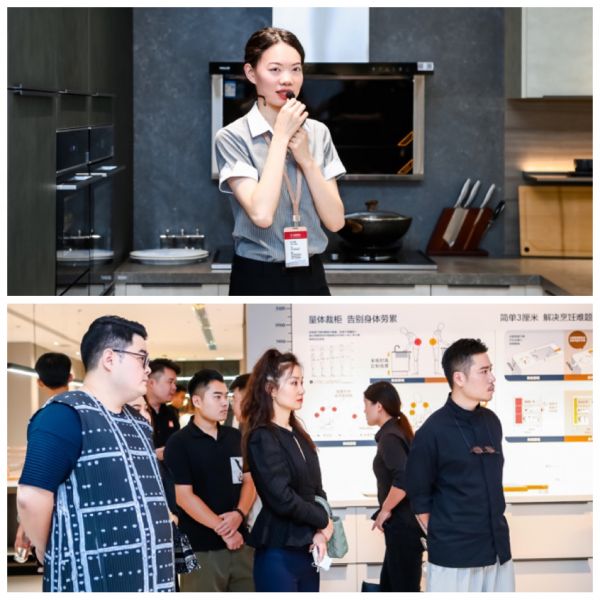 此外,本次活动的一大亮点为实地探访金牌橱柜展厅,力求所思与眼见相结合。设计师们走进金牌橱柜G9高定展厅,沉浸式体验橱柜、衣柜、木门、整装等空间,品味现代家居艺术设计,在交流中激发设计灵感和创新思潮。金牌厨柜招商建店中心总监谢惠聪谈到:金牌厨柜始终坚持从客户痛点出发,并从传统文化提炼精华进行创新,原创动力来源于客户需求与设计创新,为客户提供完整的解决方案,并创造更多价值。