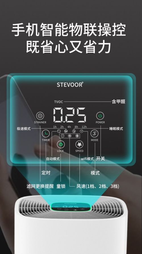 智能联网监控空气质量,斯帝沃高科技空气净化器一目了然!