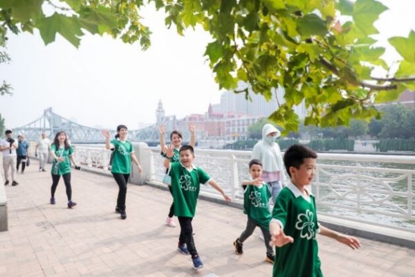 天津恒隆广场义工队号召企业义工和场内商户、协议酒店、辖区街道及海河治理的工作人员组成“健步走”团,在天津的母亲河 ── 海河进行“健步走”活动,践行保护水资源、低碳出行的理念