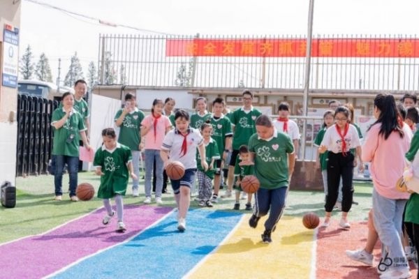 无锡恒隆广场义工队与学生代表分组清洁教室,在每位学生桌上摆放防疫物资,与学生一起制作环保手工艺品,并通过体育运动互动交流