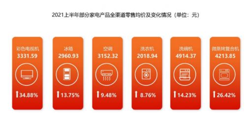 中国电子信息产业发展研究院公布最新数据显示,2021年上半年,国内家电市场零售额规模为 4293亿元,同比增长16.3%。但由于市场饱和、需求减弱,大多数家电供应商都出现了“量跌额涨”的局面,家电产品均价提升的幅度已经日益凸显。
