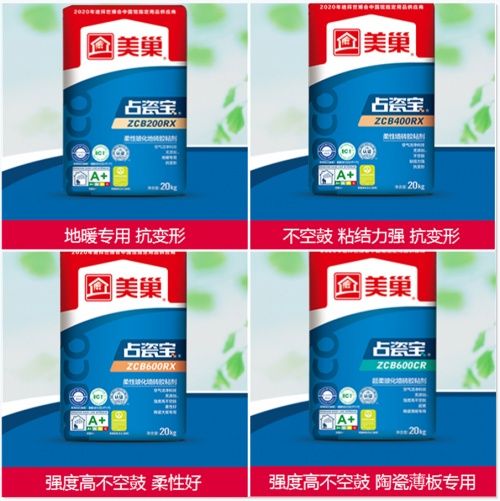 根据JC/T 547《陶瓷砖粘结剂》标准规定,按照水泥基瓷砖胶粘结强度的大小,将其分为C1、C2两个级别,其中C2等级粘接力更强!目前市面上,美巢占瓷宝瓷砖胶系列产品均为C1级别以上,铺贴时更不需要使用背胶,更安全牢靠的同时大大提升了装修效果。