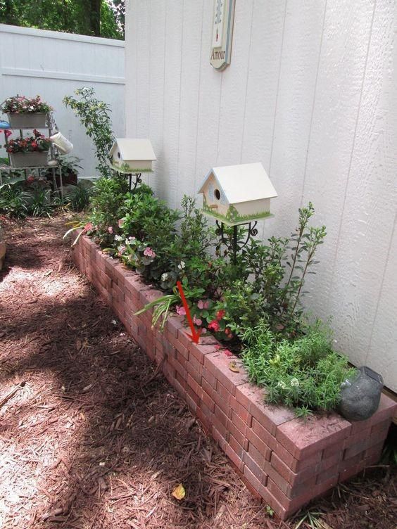 除了做成围栏设计,红砖还可以加宽做成台面,作为置物区或者设计成可供休息的凳子都是没有问题的,而且它的承重力很强。