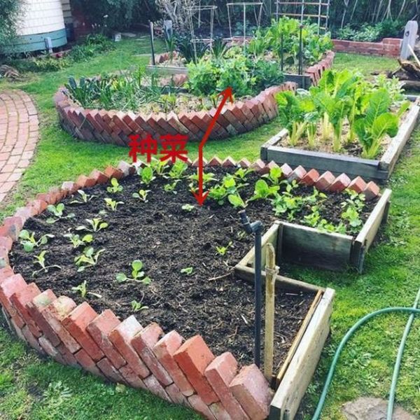 我们经常也会见到一些在院子里种菜的大爷大妈,会使用红砖来划分各个菜品的种类,红砖比较显眼,用来分区也会比较明显,还可以顺便装饰一下菜地,是个不错的想法,你们觉得呢?