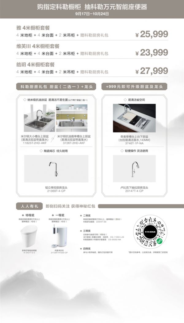 *此促销活动徐州,江阴,武汉,宁波,杭州地区不参与其中,具体活动以当地门店信息为准 本次活动最终解释权归科勒(中国)投资有限公司所有