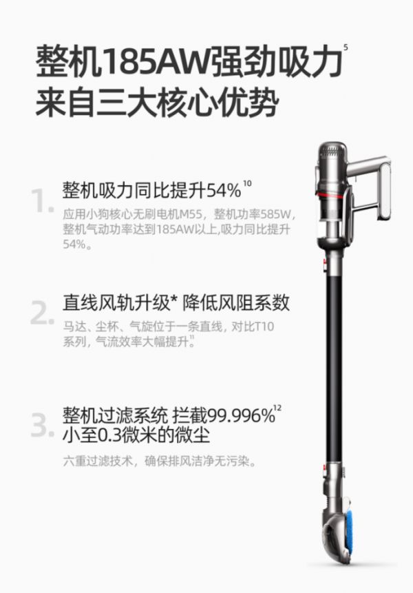小狗T12 Plus Rinse擦地吸尘器整机吸入功率高达185AW,是小狗无线吸尘器迄今为止吸力最强款,稳居现阶段国内无线手持吸尘器市场中第一梯队。内置智能数字化除尘系统,通过红外线分析气流中的微尘数量,在自动档清洁模式下自动调节功率大小,灰尘越多吸力越强。同时用户可以通过OLED显示屏实时查看机器的工作状态、剩余电量等信息,即便面对复杂的清洁场景也有的放矢。