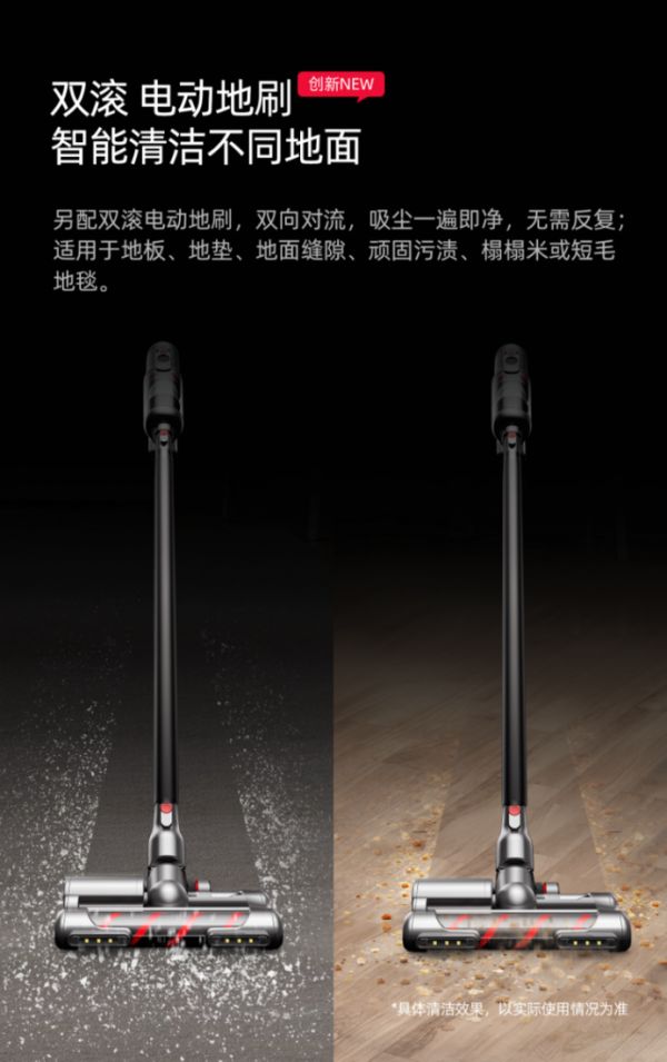 值得一提的是,相对于某些品牌产品仅限定于高扭矩地毯吸头连接状态下自动调节的除尘方案,小狗吸尘器的智能数字化除尘系统不限刷头,而是适用于全系任意刷头,最大化发挥吸尘能力。