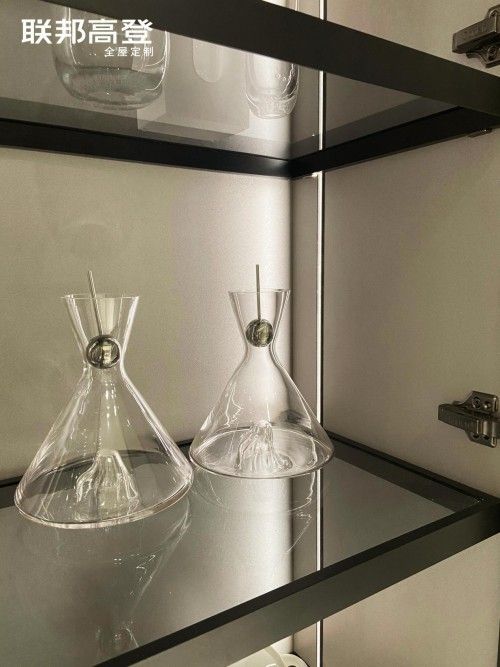 酒柜有三分之二的空间采用了玻璃柜的形式,通透式的玻璃柜不仅起到了很好的展示作用,而且一览无余还隔绝了灰尘,让珍藏的红酒也可以得到好呵护。毕竟一款好的酒柜,能够完全彰显屋主的精致品味。