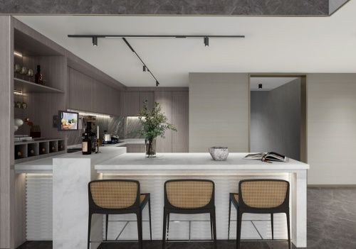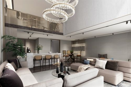 项目在建筑上大面积的石材留白,克制色彩的运用,预留了足够开阔的心灵探索空间。去繁就简的木饰面、局部雅金装饰条穿插,更多细致考究的配搭艺术,亦为包容个性家居风格留出更多想象。 京西观云台——一座山时光墅,一种东方美的全新演绎。约6.9米宽大尺度,超高挑空纵向拉伸感,使得巨幅光影、窗景顺应四季变化,任安静、和谐、含蓄的东方美感自然流转,亦将触及居者对于顺山而为、退让的智慧,以及回归东方美的居所本质更多感知。