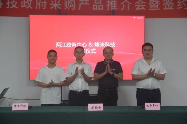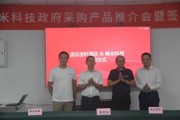 两江新区管委会办公室副主任向林与峰米科技CEO总裁赖永赛共同见证了峰米科技与两江政务中心、滨乐宝轩酒店达成战略合作签约,政务中心作为两江新区的窗口单位,率先对接,把峰米先进的投影技术运用在党建宣传上,推动两江新区的党建现代化水平的提升;滨乐宝轩酒店作为两江区域内的星级酒店,通过采购峰米激光电视产品,实现酒店大屏影音娱乐设备的迭代升级。
