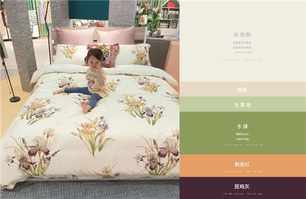 “看!看!这种颜色,近两年特别流行的。”酷爱国潮的小晴,兴奋的拉着身边同事说道。在她们眼前,摆放的是一排排精致的床上用品,呈现的是独特的中国传统色设计。