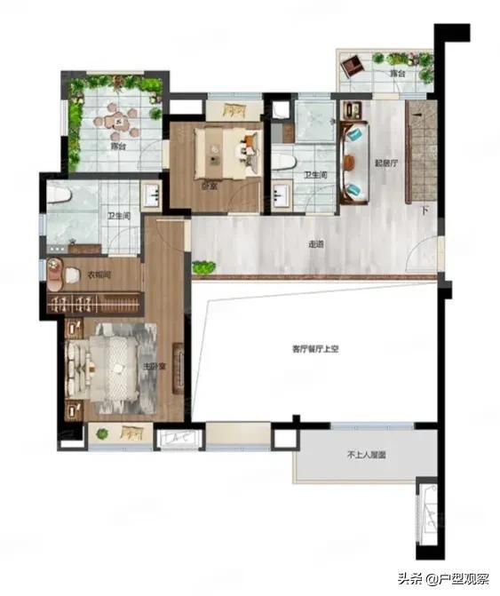 213平米顶层空中豪华复式户型,挑空两层的客厅让奢华无处遁形